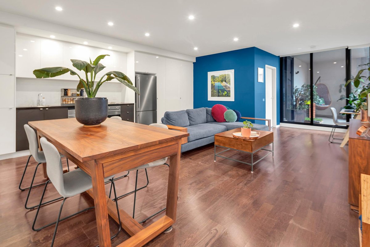 Within the secure, stylish and contemporary confines of the Riviera complex on the banks of the Yarra, this superbly spacious (60sqm approx internal) and freshly updated 1 bedroom abode offers the perfect blend of Inner-city convenience and riverside tranquility. Generous interiors present versatile open-plan living/dining areas leading out to a large balcony ideal for alfresco enjoyment, while a sleek modern kitchen is equipped with black granite benchtops, loads of recently added extra cupboard space, Smeg appliances and dishwasher. Featuring built-in robes in the bedroom and a separate laundry adjoining the bathroom, the array of fantastic communal facilities (25m indoor pool, spa, sauna and gym) enhance a brilliant lifestyle where serene walking/bike trails, city-bound trams, Victoria Gardens and Bridge Rd cafes/restaurants are all nearby. Includes secure car space and storage cage, reverse-cycle heating/cooling, video intercom entry, secure lift access & onsite building manager.
