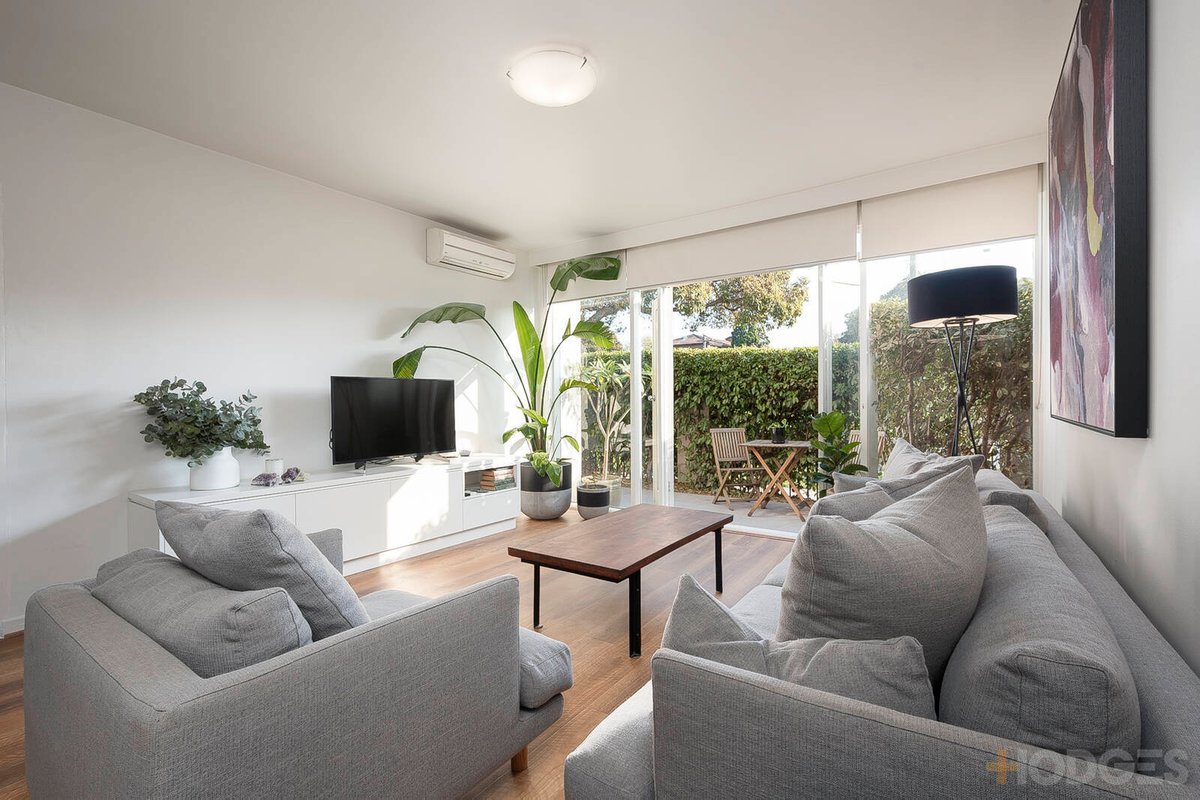 Easy functionality meets the stylish form with reverse-cycle air-conditioning plus panel heating, the security of intercom-entry and an auto-gated carspace from Bell St and the ease of a handy private WC. Perhaps best of all, there’s this spacious outdoor focused design with lush green outlooks from every window and private open space wrapping two-sides to include areas to entertain, space for pets to play, and a spot to fit the shed.