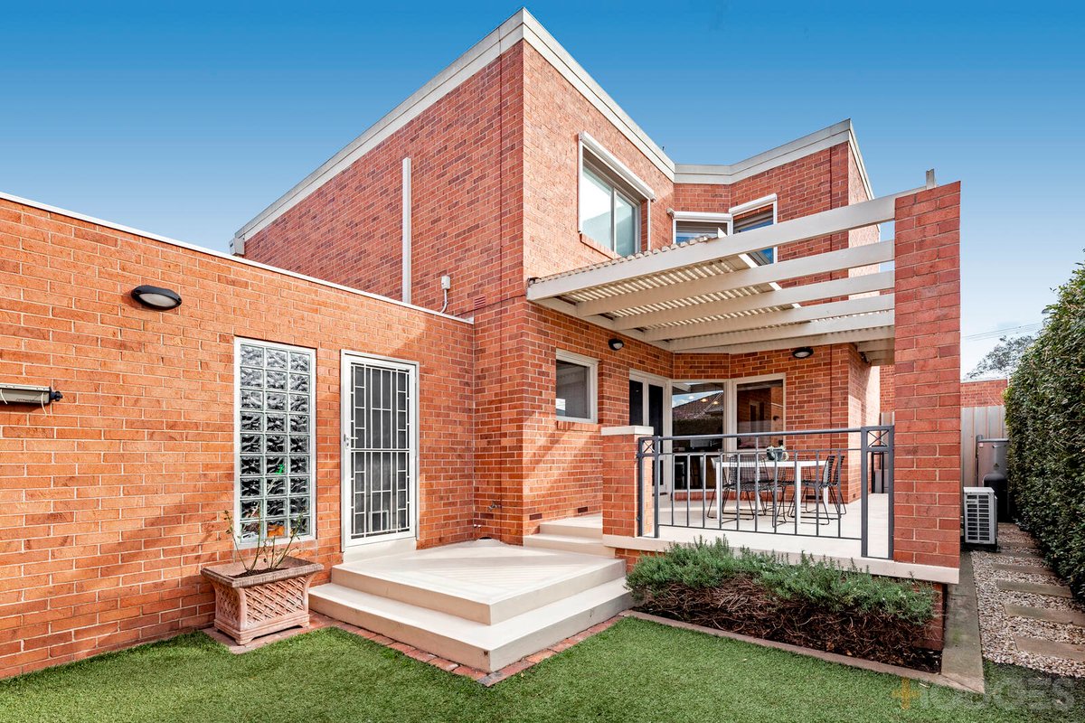 With timeless presence on the streetfront and a lifetime of sunny entertaining behind, this substantial residence is set to shine! Widespread and well-presented beside a big double auto-garage, this substantial three bedroom, 2.5 bathroom town-residence stretches out in the sun with free-flowing formal and family zones opening northwards to a covered terrace, and a lofty master-suite stepping out to a sun-bathed balcony.