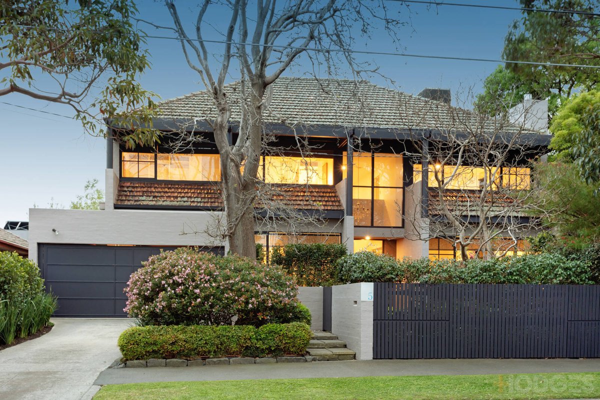 Boldly eye-catching and brilliantly accommodating, this is statement family living in sweeping approx.. 843sqm grounds. High on impact at this highly-sought address, this dynamic five bedroom, three bathroom design moves with the times with a treetop master domain, traditional formal and family living-dining opening to very untraditional terraces (one wisteria-swathed, the other chequerboard-tiled), and a clever first-floor retreat - equally perfect for work and play.