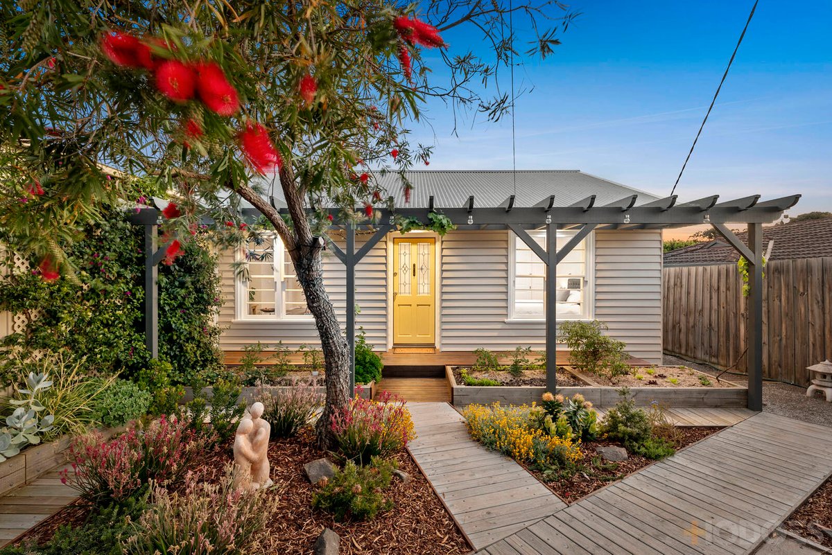 Garden-lined decks connect you to the quaint front verandah where a yellow front door welcomes you into the light-filled and spacious floorplan. Families in need of room to move and play will adore the three bedrooms and two bathrooms along with the selection of sumptuous living spaces that connect effortlessly to the outdoors.