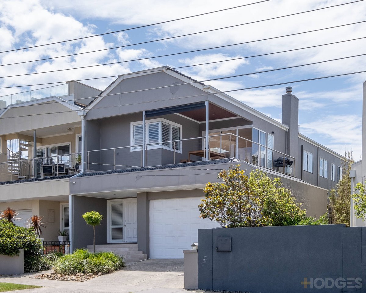 Located approximately 50 metres from the bay, this must-see property spans three sophisticated levels that culminate in a stunning rooftop terrace with glorious 360 degrees vistas to the bay. Offering multiple alfresco spaces from which to relish the locale, the home’s well-conceived floorplan features three full-sized downstairs bedrooms each with generous fitted robes and sharing a sparkling bathroom – also here, a spacious family room extends out to low maintenance rear yard with decking.