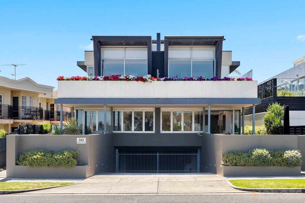 Situated at the front of a cutting-edge boutique group, and the only apartment in the complex to boast direct pedestrian access to Beach Road, this luxury residence features three queen-sized bedrooms with robes – master with luxe ensuite – an open plan living/dining zone with bay views and bi-folds to a private decked courtyard plus designer kitchen with stone benchtops and full suite of first-class Miele appliances.