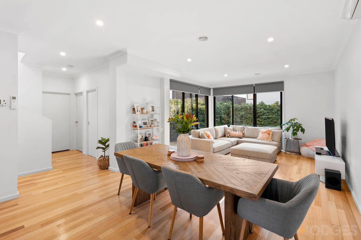 Less is more in this exceptional 6 year old, 3 bedroom home in popular Hamlyn Heights. Spaces of contemporary excellence have been combined with designer liveability, to create a commanding residence. Bathed in light, the elegantly presented open-plan living, dining and kitchen area downstairs provides a fantastic space for the family to live, relax or entertain. The designer kitchen features Caesar stone benchtops, stainless appliances including a 5 burner cooktop and wide oven, dishwasher, and pantry. A set of sliding glass doors open indoor entertainment to outdoor enjoyment, with a concreted alfresco and courtyard with garden surrounds. Serviced by gas ducted heating and split system cooling, the lower level also includes a laundry and powder room, and the double garage provides convenient internal access.