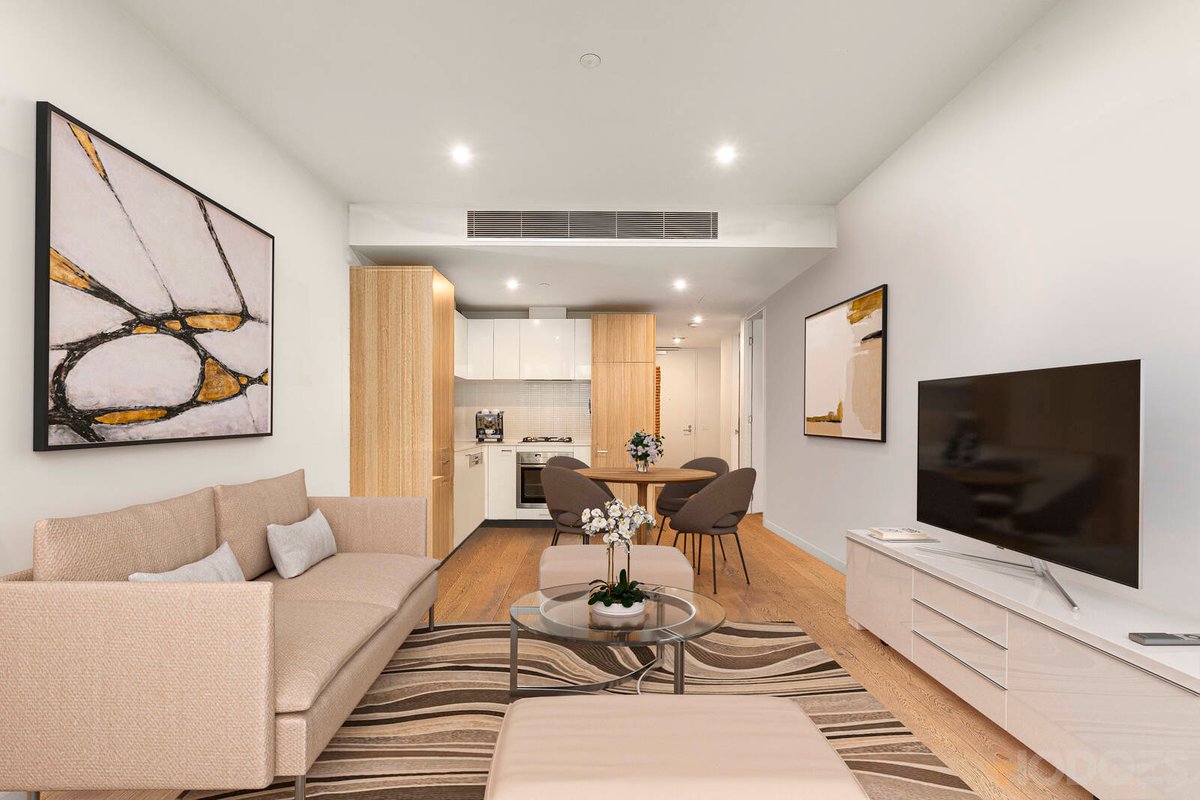 Prestige appointed with a streamlined Neff appliance kitchen, a concrete-style fully-tiled bathroom and a well-designed European laundry, this reverse-cycle air-conditioned apartment showcases signature stone benchtops, wideboard oak floors and dual day-night blinds…plus bespoke extras including bedhead cabinetry in addition to built-in robes!