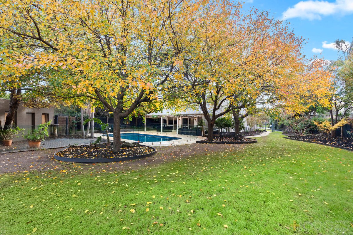 Nestled within glorious gardens complete with a heated pool, wisteria-laden alfresco terrace and expansive grassed area, the home’s interiors have been completely modernised to offer the very best in relaxed family living. Exquisite engineered oak floors flow seamlessly throughout the two-storey accommodation which includes four bedrooms, a dedicated & fitted home office, open plan living/dining zone with cosy gas fireplace plus first-class chef’s kitchen equipped with a full suite of premium Bosch appliances along with a walk-in pantry and access to a laundry/butler’s pantry with extensive storage.