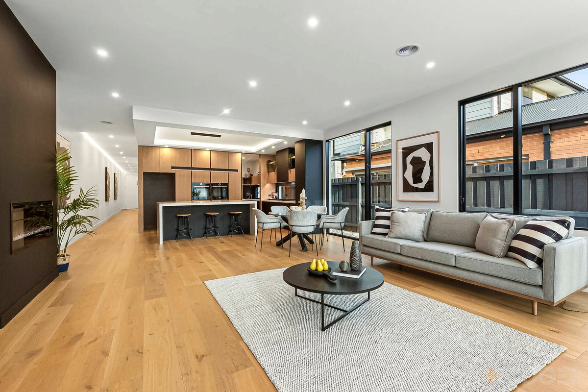A spectacular showcase of family-sized luxury, this master-crafted town residence embodies the very best of brand-new contemporary excellence. Stepping beyond the keyless entry, the free-flowing floorplan reveals high-end appointments and designer décor every step of the way enhanced by generous proportions, wide floorboards and the glorious vertical dimension of 3m ceilings.