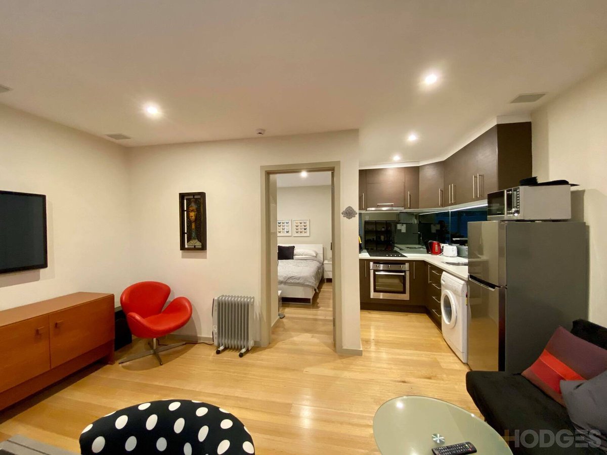 Consisting of a private entrance through to your very own North-facing courtyard, open plan living/dining with split system heating and cooling, modern kitchen, bedroom with BIR and ensuite bathroom. The list goes on with off street parking and floorboards. Sold fully furnished and equipped if needed.