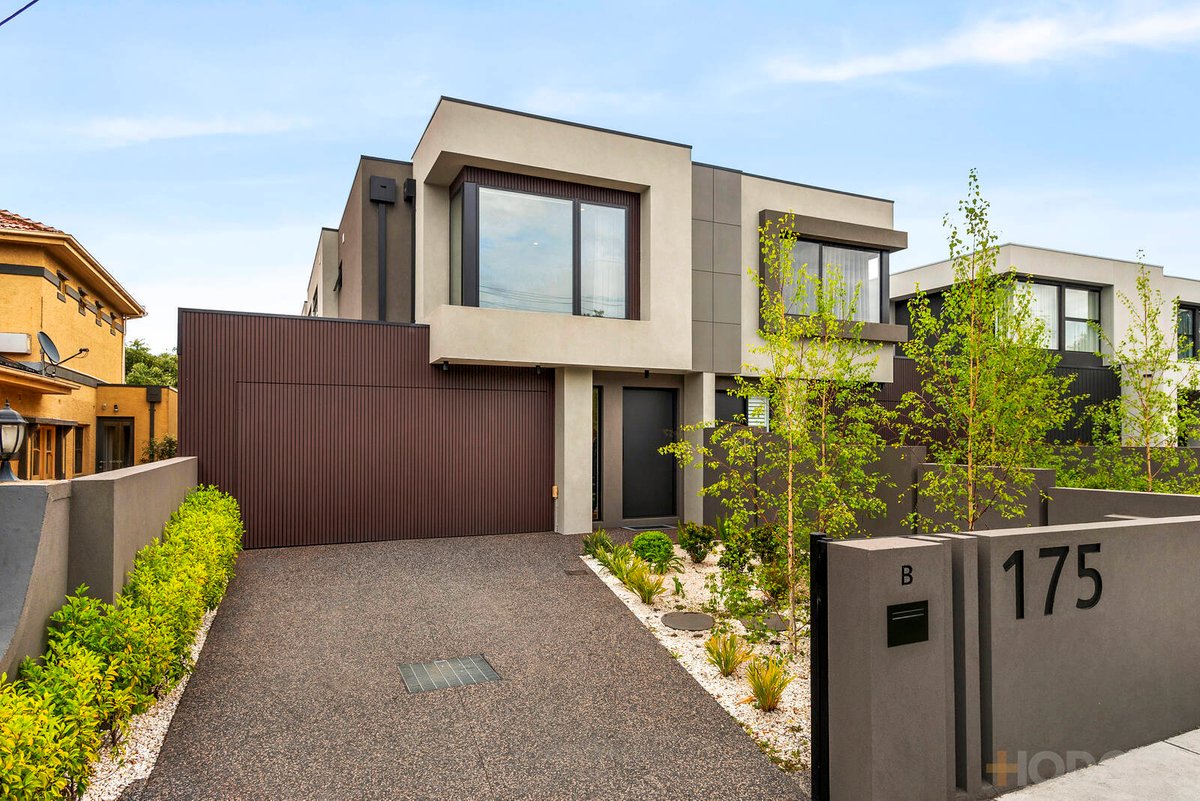 The standout home also features a guest powder room, laundry, double garage with internal entry and feature floor, ducted heating and cooling including linear grills, a sky-lit cantilevered solid Vic Ash staircase edged with a vertical timber balustrade, wide European Oak Engineered floors, quality carpets, bespoke cabinetry, upgraded bathroom fittings and tapware, a water tank and an electric front gate.