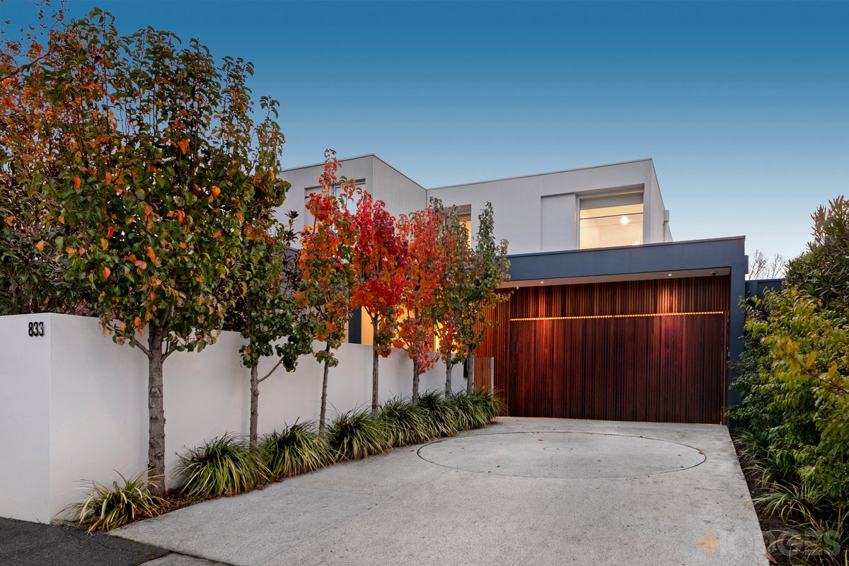 A family residence of rare scale and substance built on an upscale low-maintenance site, this custom-designed home from Stonnington Residential unfolds beyond an immense pivot door with a widespread four bedroom plus home-office, 3.5 bathroom design featuring living on each level, a choice of master-suite upstairs and down, and space for work and play in a garden-view home-office and retreat/study for the deep first-floor suite.