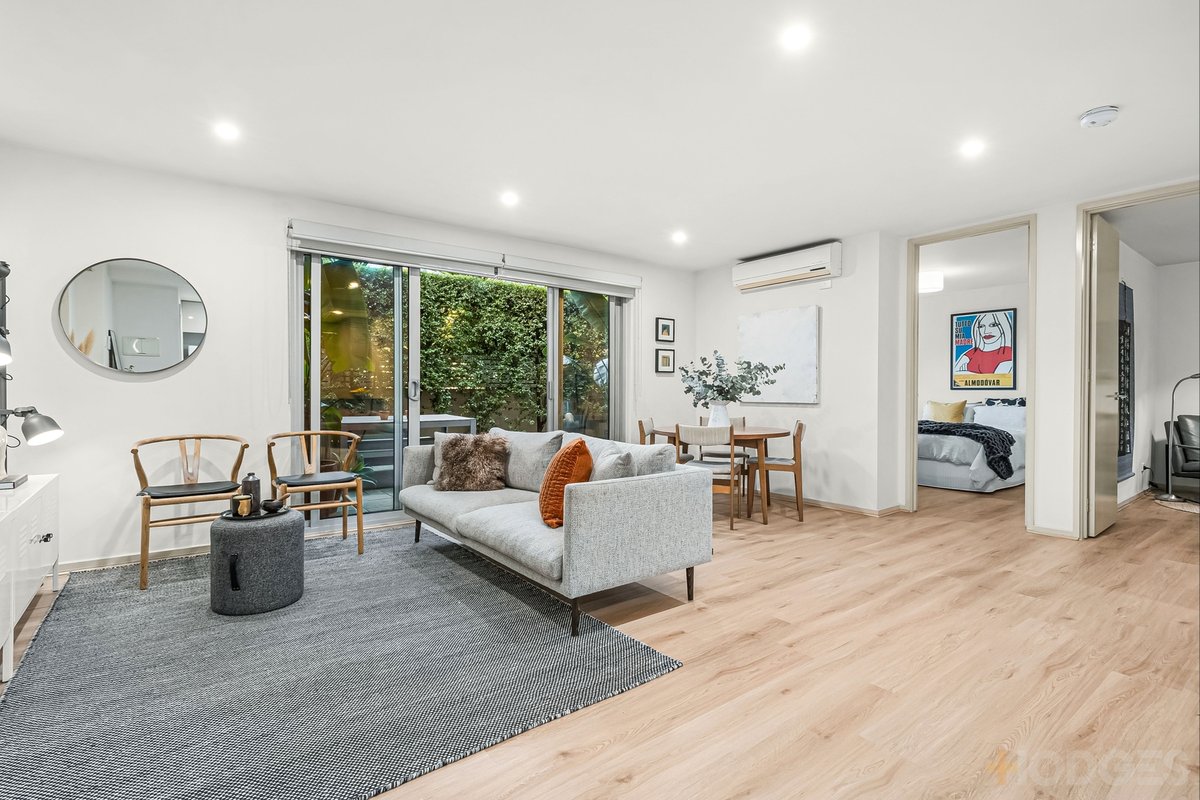Featuring a spacious private courtyard surrounded by lush greenery, this contemporary two-bedroom residence offers you an oasis on the doorstep of Caulfield Park. Perfect for downsizers or first-home buyers, the apartment boasts an open-plan living area bathed in natural light that connects to the courtyard through expansive glass sliding doors for indoor-outdoor relaxation and entertainment. Inside you'll find a modern kitchen, stylish bathroom, and generous bedrooms with ample built-in wardrobes. Convenience is key with the apartment offering a private courtyard entrance, European laundry, two split systems, undercover parking and a roomy storage area. Local shops, cafes and public transport are all a short stroll away. Your opportunity for boutique living at a remarkable parkside location has arrived.