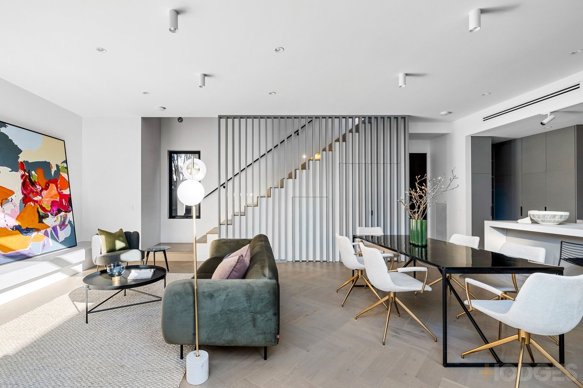 However you live and whatever the choice, the same demanding architectural specification applies. Oriented to maximise northern light and leafy outlooks, the streamlined architect-design features full-height (3m) walls of north-facing glass from ground-floor living to entertainers’ patio. Boldly contemporary by design this home is specified with an integrated fridge for its elite European appliance kitchen, dual-vanity ensuite upstairs, abundant storage including streamlined built-in robes.