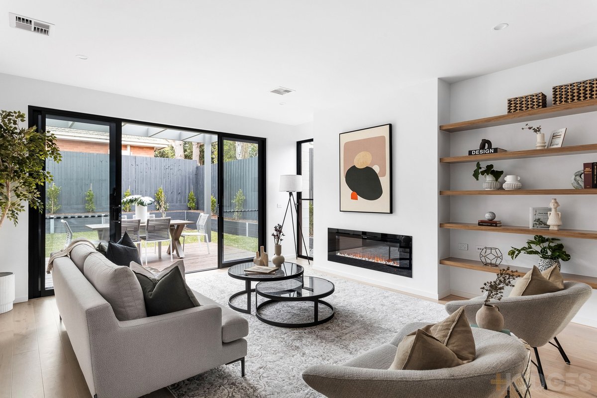 A showcase of this in-demand builder’s leading-edge design with a top-of-the-range Bosch kitchen wrapping around to an integrated butler’s pantry area, there’s a wide-format fireplace stretching along the lounge area. Maximising light and views, this architectural home features tall 2.4m doors rising to meet squareset 2.75m ceilings on each level, floor and splashback windows catching unexpected outlooks, and rare un-obstructed first-floor glazing extending blue-sky views.
