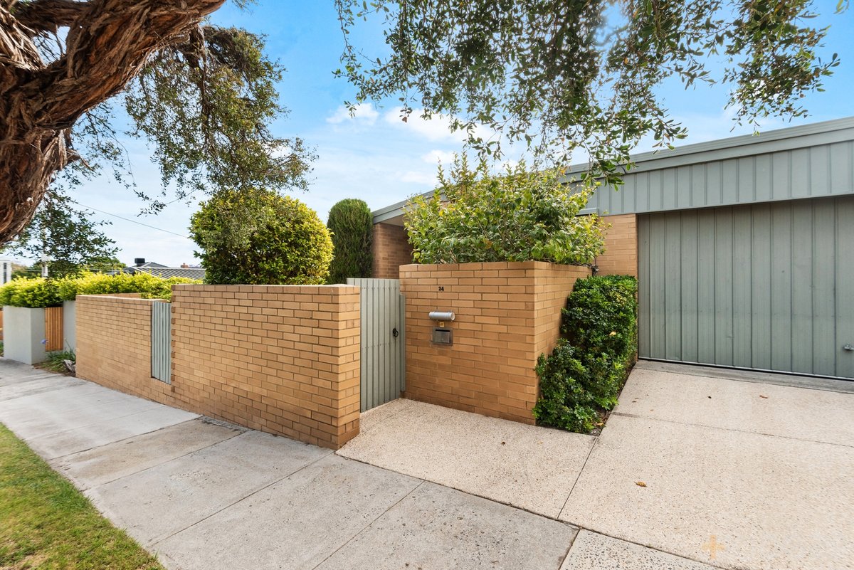 Set in approx 362sqm grounds with a well-utilised north-west aspect, this luminous design shines in sun-catching gardens; with a random-paved walled-garden out front, a high-hedged yard to the rear, and a generous double auto-garage on a streetfront drive.