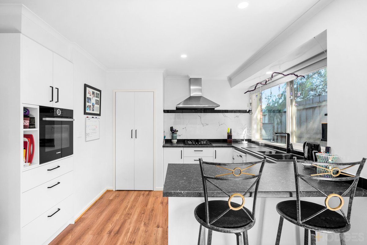 The near new, open plan kitchen complete with quality Bosch appliances, clever cabinetry, loads of storage and a breakfast bar provide the ideal spot for the family to gather whilst preparing the evening meal. The adjacent dining area for a more formal dining experience overlooks the primary living space giving connection that a modern family can enjoy. Downlights, floating timber floors, new carpets in the bedrooms, ducted heating throughout with an additional split system to this living zone rounds out the package.