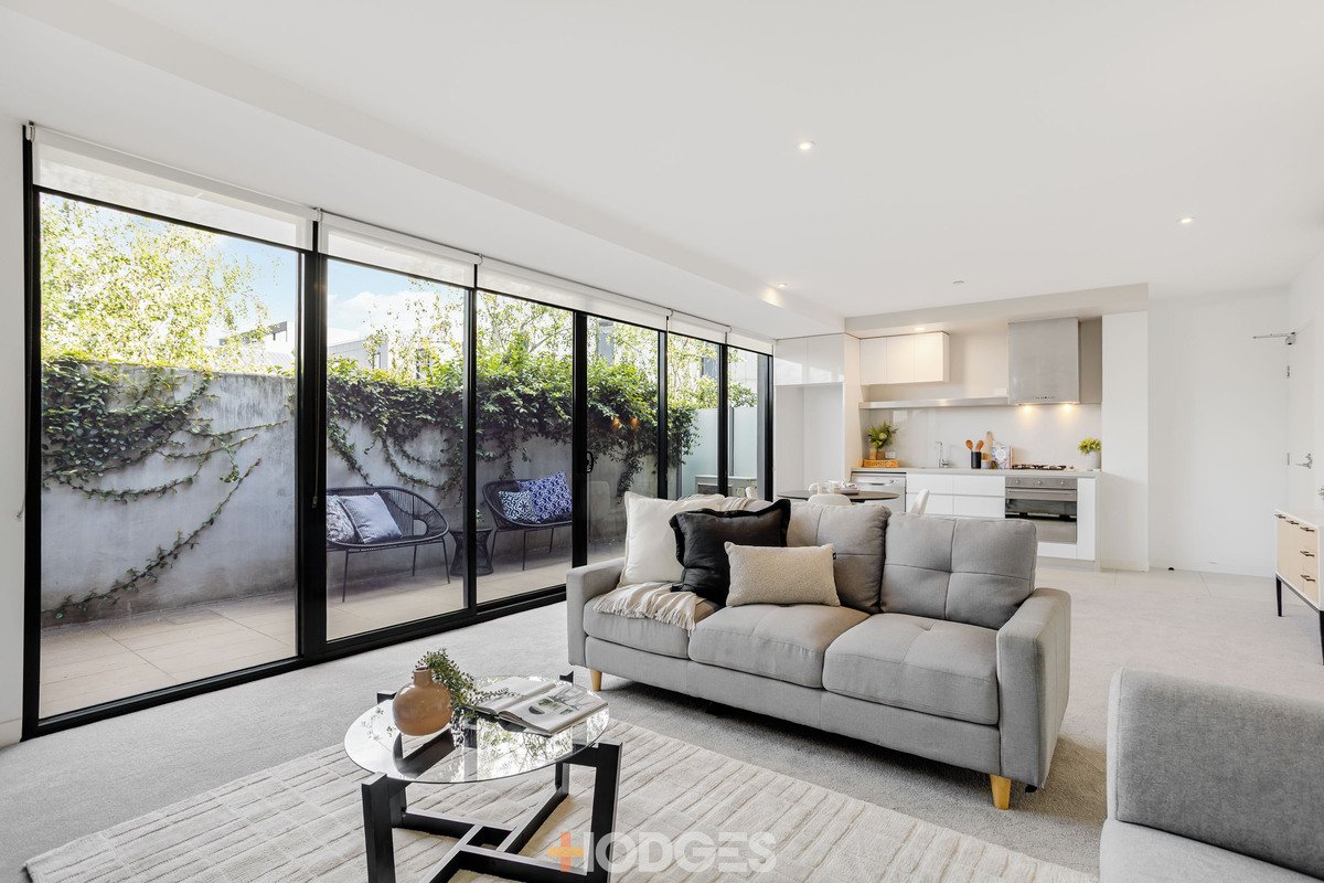 Bright and spacious open plan living, this prestigious apartment includes brilliant stylish features, contemporary style kitchen and bathrooms, including ample storage, cupboard space, quality appliances, dishwasher and stone bench tops. Both bedrooms have built-in-robes, main bedroom with ensuite bathroom, central bathroom, Euro-style laundry, split system heating and cooling and a secure car park with storage cage.
