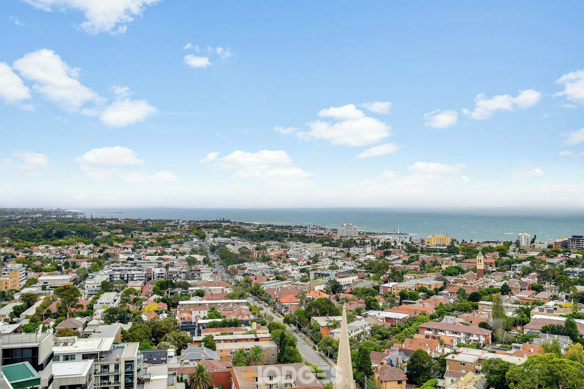 Commanding iconic bay views over the Palais Theatre, Luna Park, and well beyond, this roomy 1-bedroom plus study STK apartment creates a lasting impression for low-maintenance executive living. The contemporary interior opens into a bright open-plan space for living and dining, with extensive glass capturing beautiful sunsets over the water from the sleek stone-bench kitchen with an integrated dishwasher and electric cooking appliances. Sliding doors to the east provide a private spot for alfresco entertaining on the balcony, set beside the generous robed bedroom with expansive views out to the Dandenong Ranges. The glossy bathroom offers function and style, with a European laundry, while the dedicated study beyond an architectural screen will delight those working from home, with added storage.