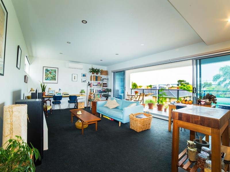 * Hosting a comfortable living space leading to balcony area