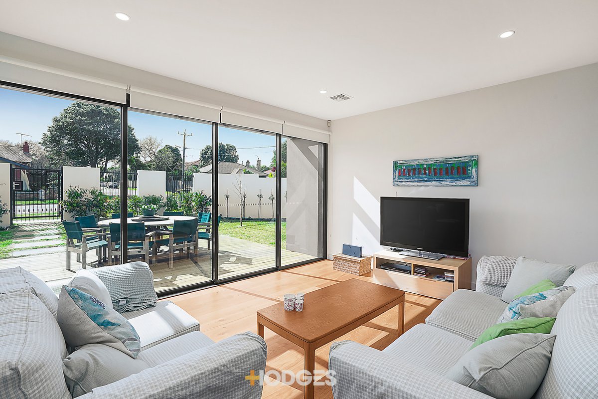 Illuminated with sunshine and sophisticated style, this luxurious 2-year young residence has been built to the highest of standards and embraces premium inclusions plus a pleasing indoor-outdoor interaction. Framed by the security of fences upon its corner 319sqm approx. allotment, the home's striking designer styling sees the spacious open plan living and dining zone adorned with Oak floorboards and focused towards the north, allowing natural light to permeate throughout. The kitchen oversees this space and showcases waterfall Caesarstone benches, Miele appliances (integrated Miele dishwasher), reflective glass splashbacks plus a walk-in/butler's pantry. Stackable sliding doors create a streamlined indoor-outdoor flow, opening onto a spectacular entertaining deck that stretches fluidly out onto the established, landscaped, low-maintenance yard. Complementing the entry level, there's a study/4th bedroom, bathroom with toilet plus a laundry, while the upper level is graced by carpet and presents a generous family retreat along with the three robed bedrooms, including the master with walk-in-robe and dual vanity ensuite, supplemented by a fashionable family bathroom with freestanding bathtub. Glorious inclusions entail ducted heating/air conditioning, ducted vacuum, Bosch alarm, video intercom, high ceilings, double glazing, single garage with internal access plus a remote-control driveway for secure second car parking. Positioned in the Brighton Secondary and Bentleigh West Primary Zones, moments from OLSH College, Bentleigh and Patterson Train Stations, Centre Rd shops and parkland.