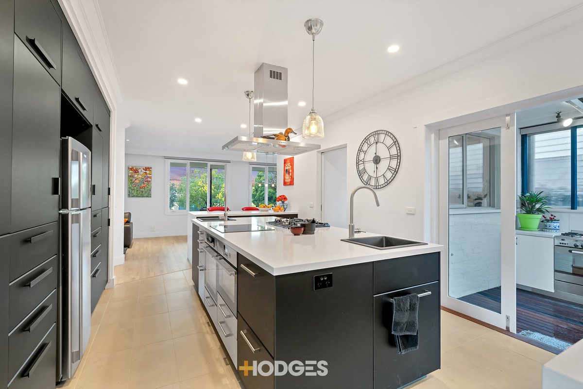 Upon entry, new lime-washed wide-board floors flow effortlessly to the serene lounge/dining area offering views across the broad verandah to the tranquil gardens beyond. Creating a buffer between this zone and the sundrenched family room is an incredible designer kitchen showcasing sleek ebony cabinetry, luxe stone benchtops, multiple ovens and both induction & gas cooktops - grand-scale entertaining has never been so easy! Summer gatherings are also a breeze thanks to the outdoor kitchen with gas/electric oven; a separate pergola with fire-pit is perfect for relaxed get-togethers.