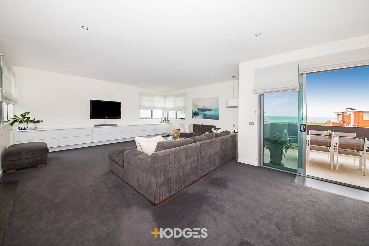 This architecturally designed, contemporary beachside town residence showcases open-plan living & dining incorporating an ocean view outdoor entertaining balcony & sleek Smeg-appointed kitchen.