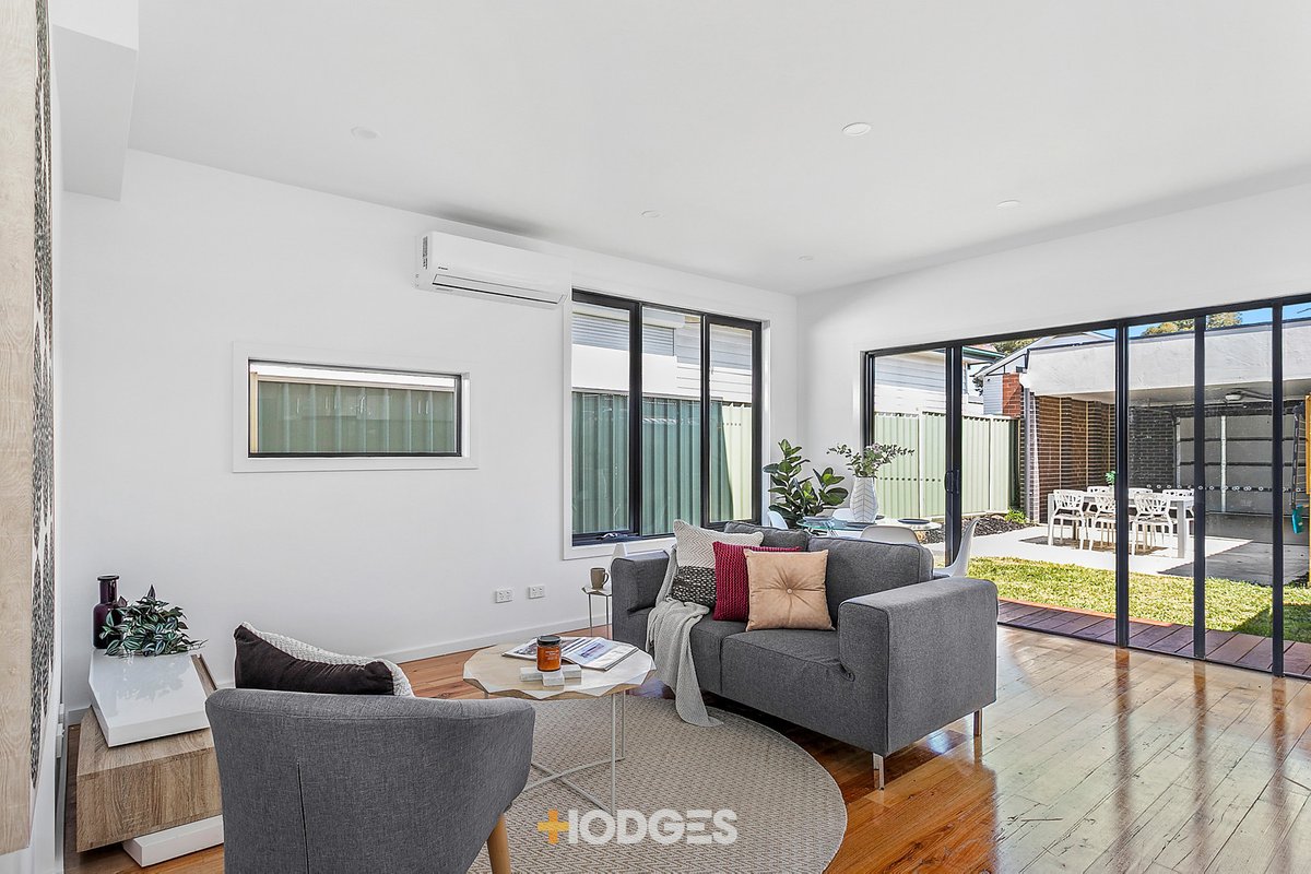 This Brand New double storey town residence on its own generous allotment of approx. 200 m2 land together with no OC fees exudes quality and style from the moment you enter this stunning Three (3) Bedrooms, Two (2) Bathrooms layout. Featuring relaxed open plan design at the rear consisting of combined Living/Dining/Kitchen area with glass double doors opening onto the huge bonus of a significant rear yard. The efficient designer Kitchen is sleek and contemporary with stone counter tops, stainless steel appliances including dishwasher and high gloss white designer cabinetry. The residence is complimented by Three (3) Bedrooms, BIRS and their own split system heating/cooling units, with One (1) Bedroom/Study/Home Office positioned on the ground floor complimented by a modern Bathroom. The first floor level consist of two (2) Bedrooms including the Master Bedroom with its own dedicated Ensuite & second Bedroom with appealing sunlit eastern aspect. Contemporary & captivating living highlighted by the polished hardwood polished timber floors throughout on both levels, huge yard ideal for entertaining and relaxation alike, single Garage (with access from ROW) plus additional off street parking space (if required) and Euro laundry, tranquil location yet just moments from public transport, shopping, cafes & dining at Highpoint Shopping Centre as well as an easy commute to Melbourne CBD make this new abode the ideal choice for either the discerning owner occupier and/or astute investor alike.