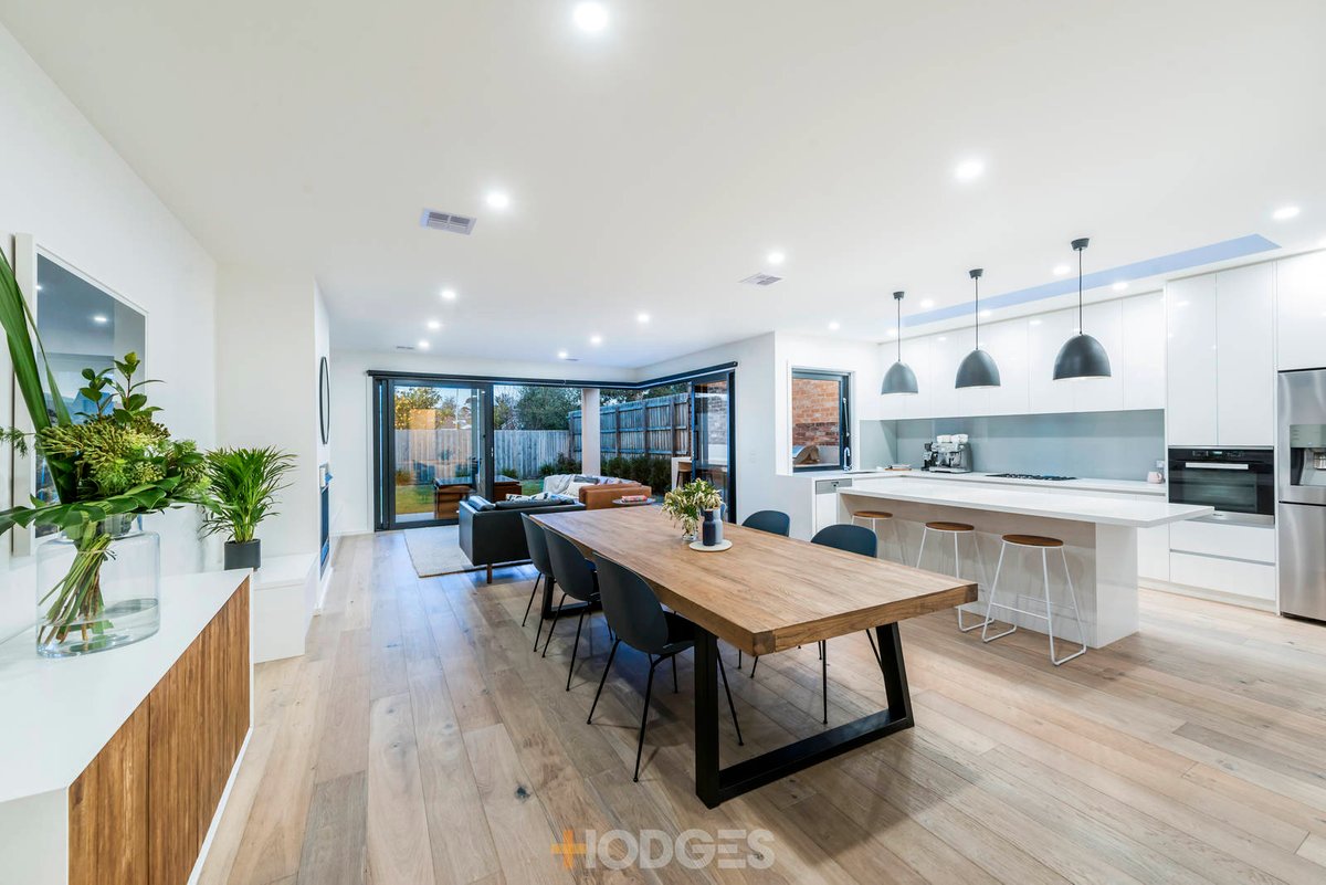 Embracing a 21st century family lifestyle, this outstanding as-new residence offers space and light with a choice of upstairs or downstairs main bedrooms with custom fitted WIR’s & chic ensuites. Perfect for family living with 4 bedrooms plus study and 3.5 bathrooms, this stunning home enjoys a fabulous open plan entertaining area (gas log fire) with study nook, a luxury stone kitchen with Miele appliances and feature gas lift window to outdoor entertaining bar and BBQ, walk in pantry and a separate laundry. The rear garden has plenty of lawn for the kids to play and an undercover alfresco entertaining area is perfect for all year round entertaining. Upstairs are 3 further bedrooms (including the 2nd master suite), an exquisite family bathroom and a 2nd relaxing living/retreat area. This exceptional family home boasts engineered European Oak floors, high ceilings throughout, zoned ducted heating/refrigerated cooling, an alarm, video intercom, water tank, roller blinds (motorized blinds in the open plan area), excellent storage, a smart app control system, a large single auto garage and room for a 2nd car off-street. In this sought after Bayside street, a casual stroll to the vibrant Highett Village, Spring Road shops & cafes, Highett train station, bus to your choice of either Highett train or Hampton train Stations, excellent local schools and minutes to the Beach.