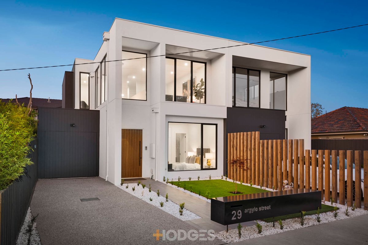 Additional benefits include a laundry, guest powder room, deep under-stair storage, extensive ceiling-height cupboards in the wide entry, floorboards, plush carpets, ducted heating and air conditioning, central vacuuming, video entry, on-trend black tapware and door handles, and off-street parking for two cars.