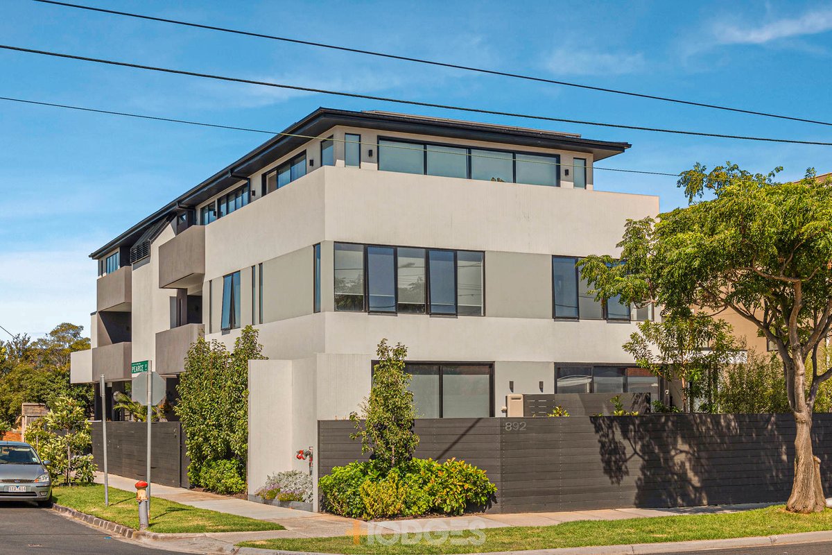 Delivering the luxury of space with the benefits of two outside areas, this stylish contemporary apartment is an indoor-outdoor dream. Designed for high-quality, low-maintenance enjoyment, the classy abode features a substantially sized open-plan living and dining room overlooked by a clean-lined kitchen equipped with Bosch appliances and integrated Hafele fridge and freezer. An over-sized terrace drenched in northeast sunshine provides the ultimate setting for alfresco entertaining, while a private courtyard flowing from the each of the two bedrooms is perfect for relaxing with a book and catching some Vitamin D in the afternoon. Nestled in a wing of its own, sleeping accommodation provides ample room for rest and retreat with a main ensuite bedroom with both walk-in robe and built-in robes, a second bedroom with built-in robes, and a second bathroom. Additional impressive features include recessed rain shower heads and hand-held showers in the two on-trend bathrooms, concealed European laundry, reverse-cycle air conditioning, floorboards, video-monitored intercom entry, double-glazed windows, car space and a storage cage. Sure to attract professional couples, young families or those scaling down with convenience in mind, this premium abode has trams footsteps away and is also within walking distance of Glen Huntly Village and Station, Booran Road Reserve and local shops and cafés.