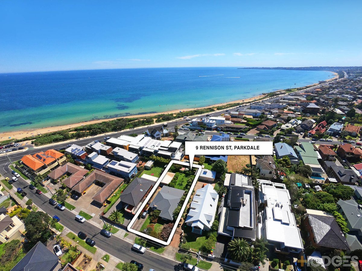 Situated on approx. 714sqm of prime Parkdale land, just doors to the suburb’s beautiful foreshore, the possibilities that this incredibly positioned property offers are truly boundless. Showcasing classic Art Deco features such as decorative ceilings, textured walls, a curved front porch and front door with authentic porthole window, the chance to rejuvenate the existing home will tempt many buyers. Extremely comfortable but with plenty of scope for a modern & sympathetic makeover, current accommodation includes dual living zones, a central & well-positioned kitchen plus up to four bedrooms (or three and a formal dining room). A mostly original bathroom and two toilets are included along with a full laundry, split system heating/cooling, new Colourbond roof, hardwood floors and workshop/garage.