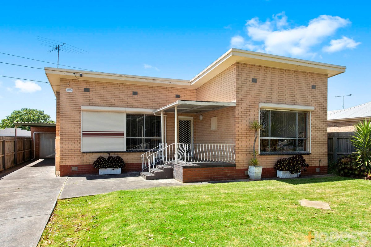 This original brick veneer home presents an exciting opportunity for first home buyers and investors looking for an entry-level home into an undoubted growth area of Geelong. The property is within walking distance of North Geelong train station and sporting facilities at Geelong Arena, Geelong Golf Club and Geelong West Oval. Situated on 646m2 (approx.) block, this naturally lit home offers a large kitchen with plenty of bench and storage space also providing flow through to the large front living room. 2 Generous sized bedrooms are serviced by the central bathroom. With timber flooring throughout there is scope to renovate and extend or invest and enjoy a solid return for years to come. Other highlights include gas heating, A/C, large garaging space, multiple garden sheds.