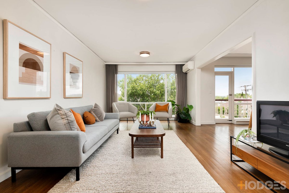 Funky retro style seamlessly matched with modern updates defines this tremendously spacious apartment. Everything’s great about it – from the exceptionally proportioned house-sized accommodation to the excellent layout to the outstandingly convenient yet peaceful location. With natural light reaching every corner of the vast floor plan thanks to big picture windows, the interior evokes a bright and relaxing environment highlighted by an east-facing, morning-sun drenched living room with a separate dining room stepping out to a big balcony – perfect for kickstarting the day with a morning coffee and breakfast backdropped by wide-spread tree-top views. Modernised in high-end vogue fashion, the massive premium kitchen is a home cook’s dream with Smeg wide oven and gas cooktop, integrated dishwasher, stone benchtops, breakfast bar and lots of cabinetry shaping it into an inviting culinary space. Two bedrooms appointed with built-in robes and commercial-grade velour plush wool carpets, a central bathroom featuring a bath, step-in shower and subway tiles, a separate toilet with hand basin, a full laundry room, dedicated entry foyer, reverse-cycle heating/air conditioning, carport, intercom security entry, shared storage area, shut-out roller blinds, Belgian linen curtains, polished timber floors, and communal gardens for entertaining and catching up with friends complete this beauty. Perched on the top floor of a small boutique block of just six, the ready-to-enjoy home is within short walking distance of Glen Iris and Gardiner train stations, tram routes #6 and #72, and Peace, Kyarra and Glenburn Parks and close to schools, Chadstone, Tooronga Village, High Street Ashburton’s retail strip, Camberwell Shopping and the Monash Freeway for easy access to the city.